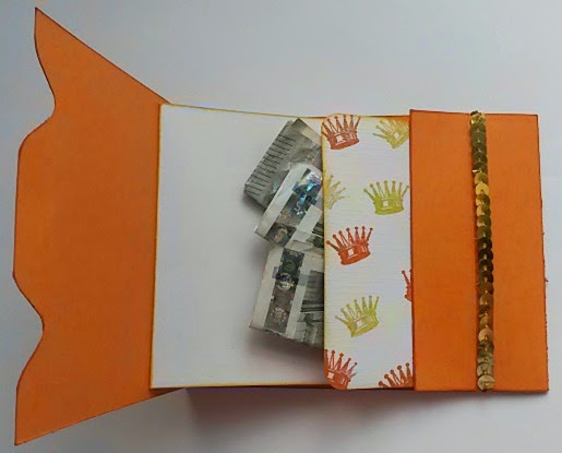 een erg vrolijke kaart met dat gekroonde kereltje en dat kroontjespapier